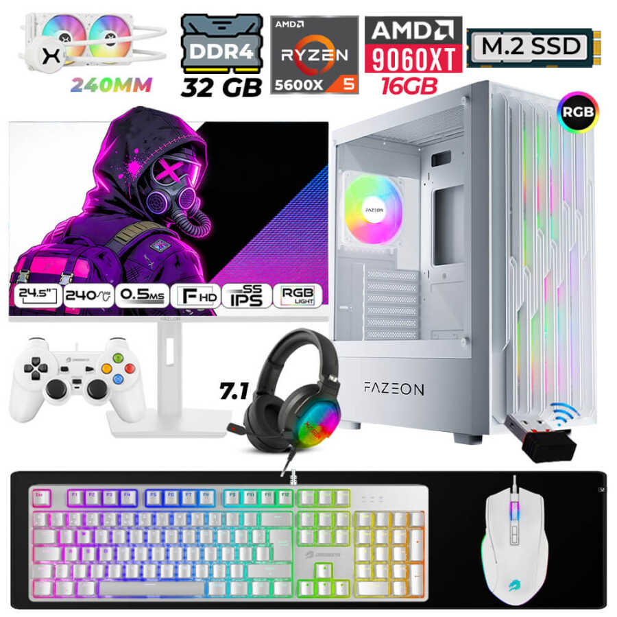 Xaser Astra X330 Ryzen 5 5600X 32GB Ram 1TB M.2 NVMe SSD 16GB RX9060 XT Sıvı Soğutmalı 24,5" 240Hz Oyuncu Tavsiye Sistem