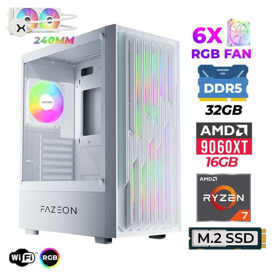 Xaser Astra X620 Ryzen 7 7700X 32GB DDR5 Ram 1TB M.2 NVMe SSD 16GB RX9060 XT Sıvı Soğutmalı Oyuncu Tavsiye Sistem