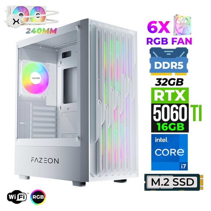 Xaser Astra X760 i7 14700F 32GB DDR5 Ram 1TB M.2 NVMe SSD 16GB RTX5060 Ti Sıvı Soğutmalı Oyuncu Bilgisayarı