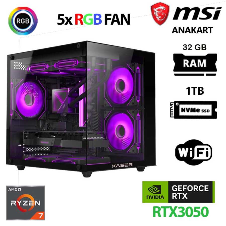 Xaser Cube X10 Ryzen 7 5700x 32GB Ram 1TB M.2 NVMe SSD 6GB RTX3050 Oyuncu Tavsiye Sistem