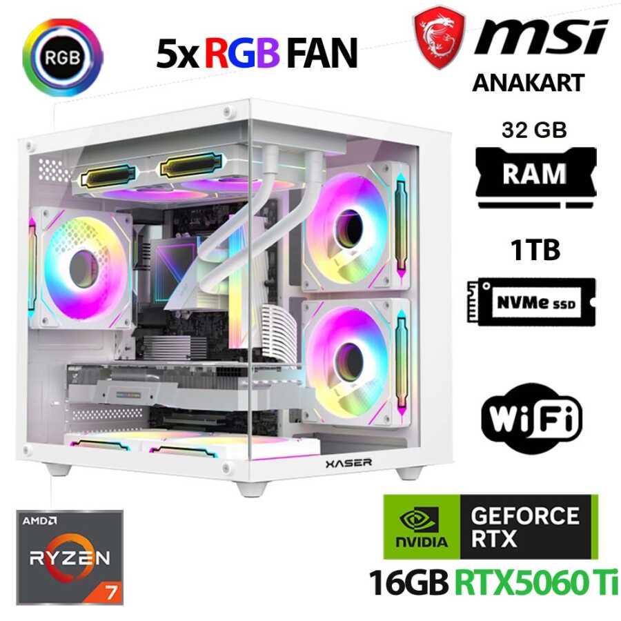 Xaser Cube X100 Ryzen 7 5700x 32GB Ram 1TB M.2 NVMe SSD 16GB RTX5060 Ti Beyaz Oyuncu Tavsiye Sistem