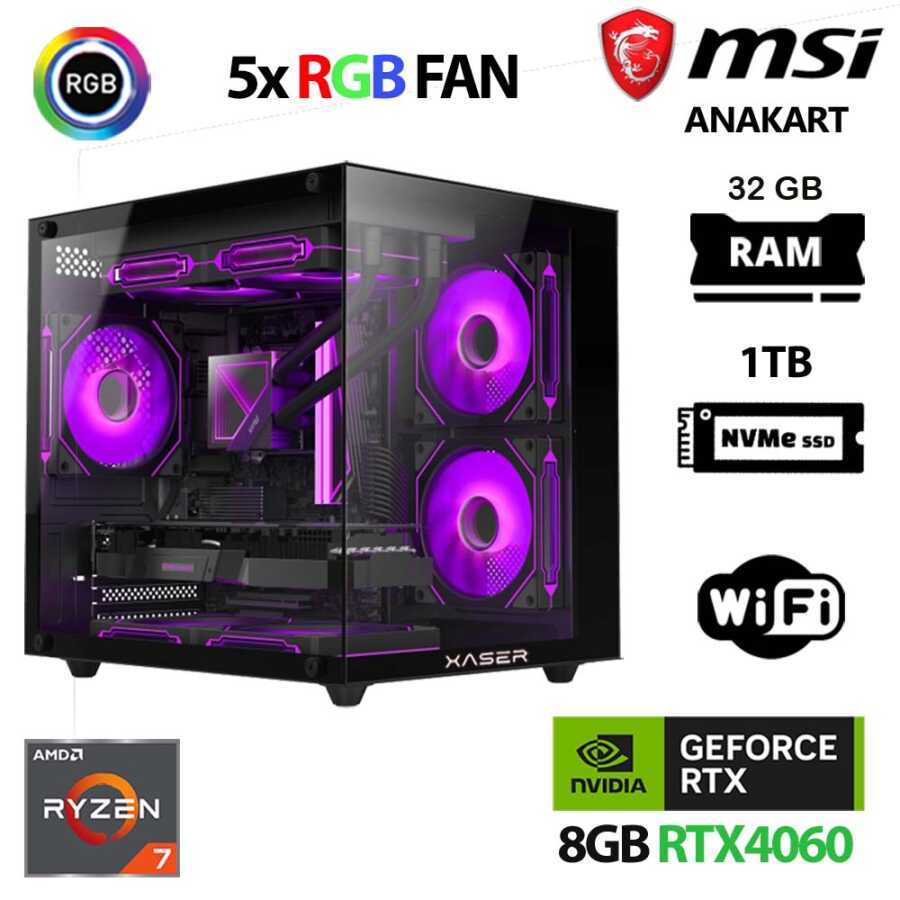 Xaser Cube X50 Ryzen 7 5700x 32GB Ram 1TB M.2 NVMe SSD 8GB RTX4060 Oyuncu Tavsiye Sistem