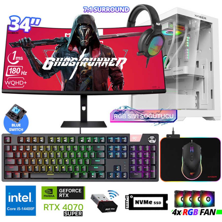 Xaser Delux X106 i5 14400F 16GB DDR5 Ram 512GB M.2 NVMe SSD 12GB RTX4070 SUPER 34 Sıvı Soğutmalı Oyuncu Tavsiye Sistem