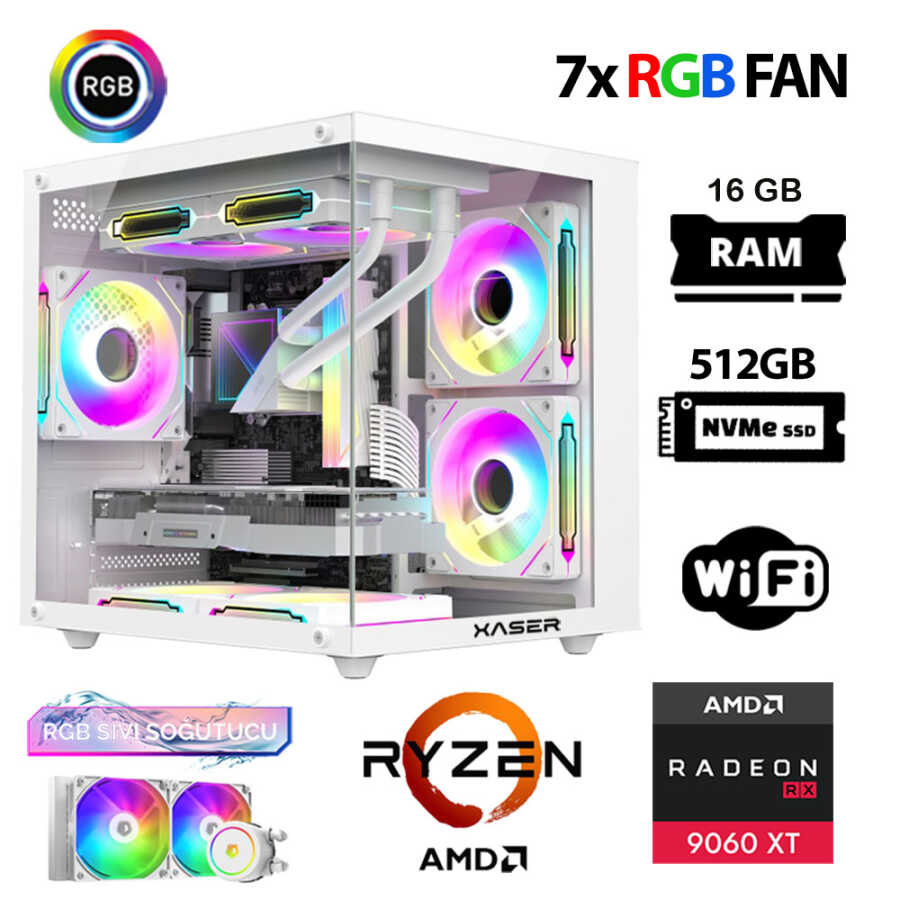 Xaser Eco X10 Ryzen 7 5700x 16GB Ram 512GB M.2 NVMe SSD 16GB RX9060 XT Sıvı Soğutmalı Hazır Oyuncu Sistemi