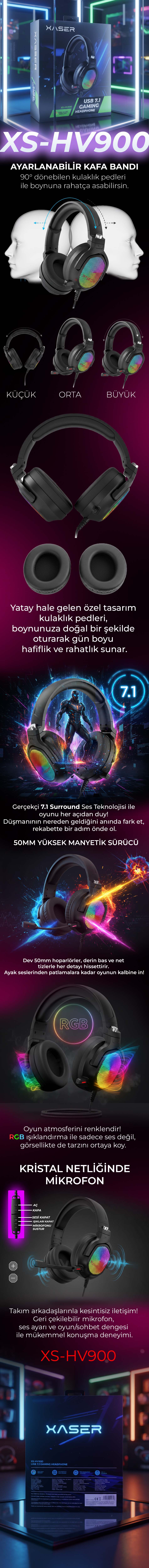 Xaser GT-HV900 Siyah 7.1 Usb Rgb Gaming Oyuncu Mikrofonlu Kulaklık