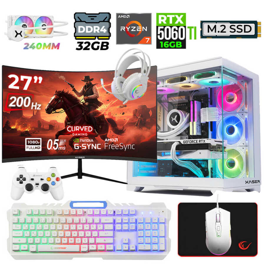 Xaser Helmet X60 Ryzen 7 5700X 32GB Ram 1TB M.2 NVMe SSD 16GB RTX5060 Ti Sıvı Soğutmalı 27" 200Hz Oyuncu Tavsiye Sistem