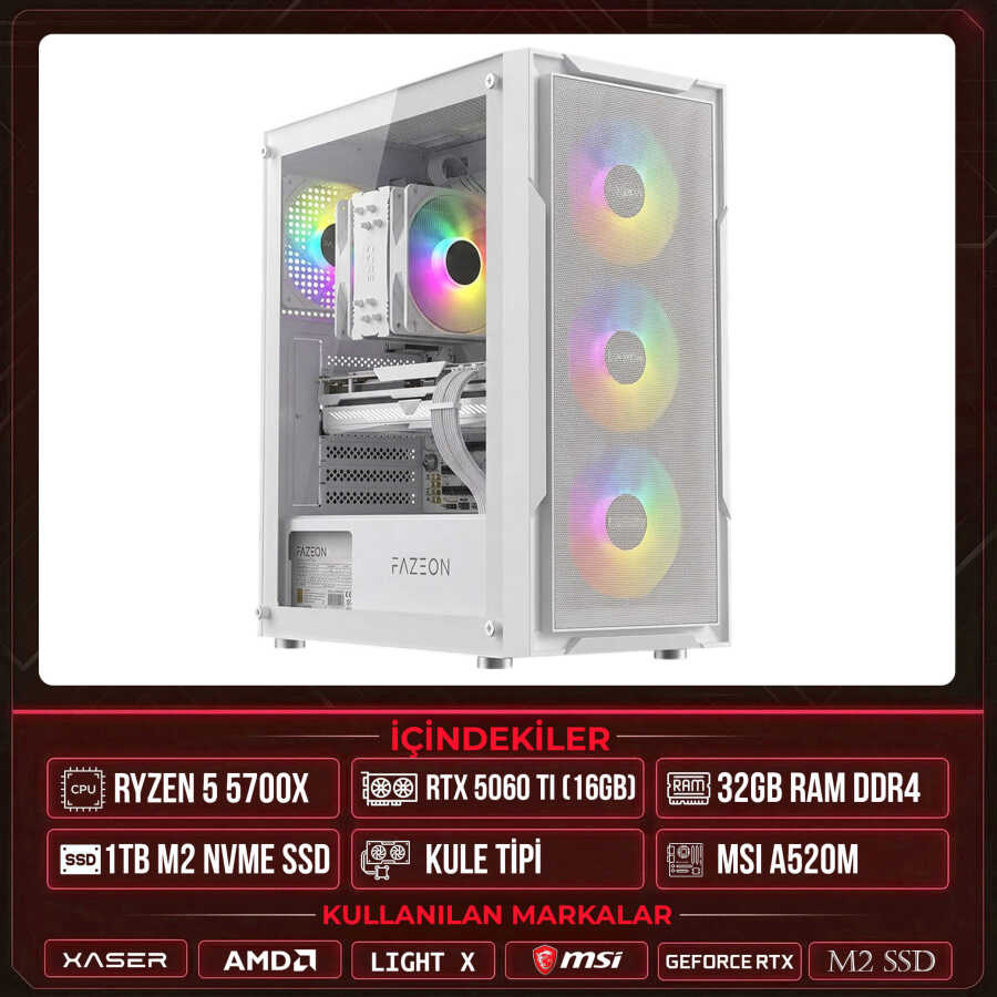 Xaser Light X40 Ryzen 7 5700X 32GB Ram 1TB M.2 NVMe SSD 16GB RTX5060 Ti Masaüstü Oyuncu OEM Bilgisayar