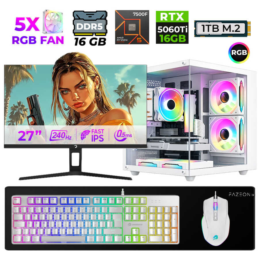 Xaser Live X80 Ryzen 5 7500F 16GB DDR5 Ram 1TB M.2 Nvme SSD 16GB RTX5060 Ti 27" 240Hz Masaüstü Oyuncu Bilgisayarı