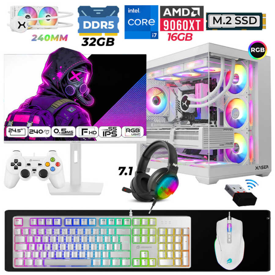 Xaser Moon X160 i7 14700F 32GB DDR5 Ram 1TB M.2 NVMe SSD 16GB RX9060 XT Sıvı Soğutmalı 24,5" 240Hz Oyuncu Tavsiye Sistem