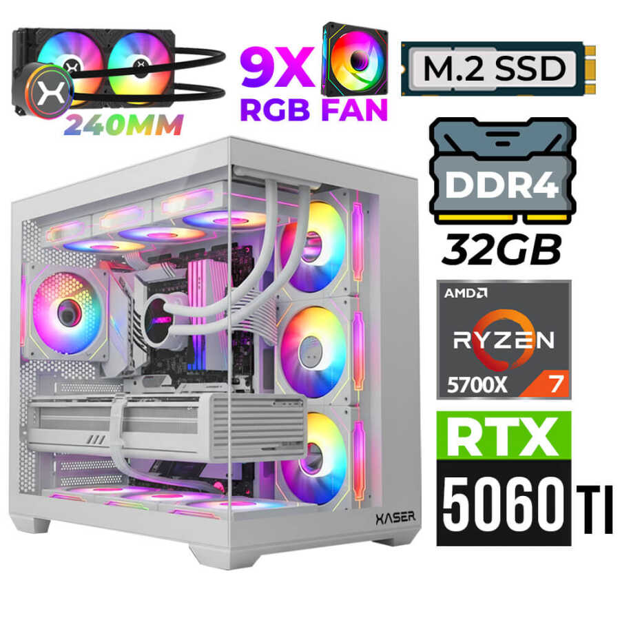 Xaser Nova X70 Ryzen 7 5700X 32GB Ram 2TB M.2 NVMe SSD 16GB RTX5060 Ti Sıvı Soğutmalı Oyuncu Tavsiye sistem