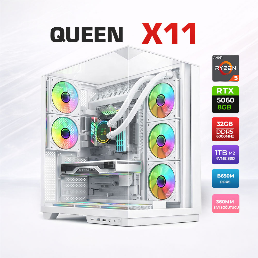 Xaser Queen X11 Ryzen 5 7500F 32GB DDR5 Ram 1TB M.2 NVMe SSD 8GB RTX5060 Sıvı Soğutmalı Oyuncu Bilgisayarı