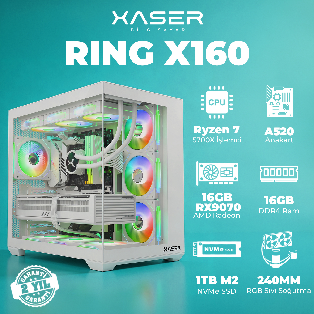 Xaser Ring X160 Ryzen 7 5700X 16GB Ram 1TB M.2 NVMe SSD 16GB RX9070 Masaüstü Oyuncu Bilgisayarı