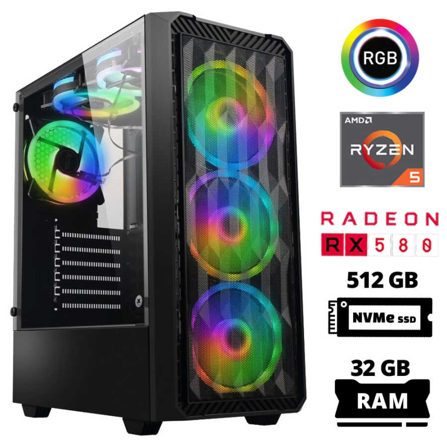 Xaser Xsr1034 Ryzen 5 3600 32GB Ram 512GB M.2 NVMe SSD 8GB RX580 Oyun Hazır Sistem