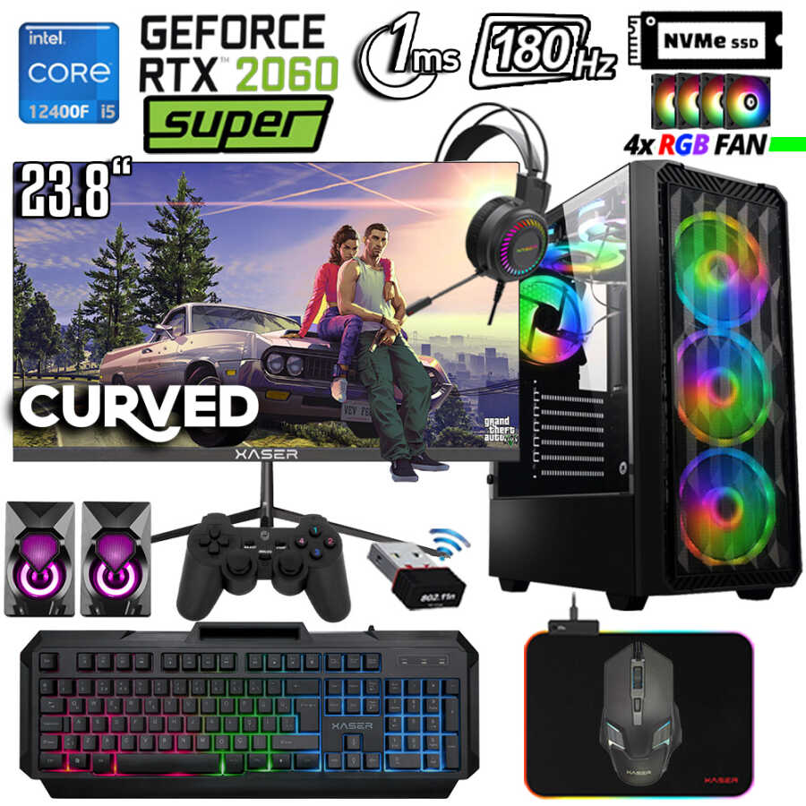 Xaser Xsr1070 i5 12400F 32GB Ram 1TB M.2 NVMe SSD 8GB RTX2060 SUPER 24" Curved 180Hz Oyun Hazır Sistem