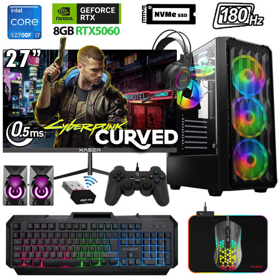 Xaser Xsr1131 i7 12700F 32GB Ram 1TB M.2 NVMe SSD 8GB RTX5060 27" 180Hz Oyuncu Tavsiye Sistem