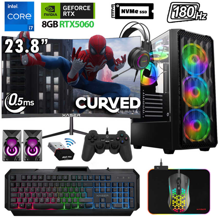 Xaser Xsr1135 i7 14700F 32GB DDR5 Ram 1TB M.2 NVMe SSD 8GB RTX5060 23.8" 180Hz Oyun Tavsiye Sistem