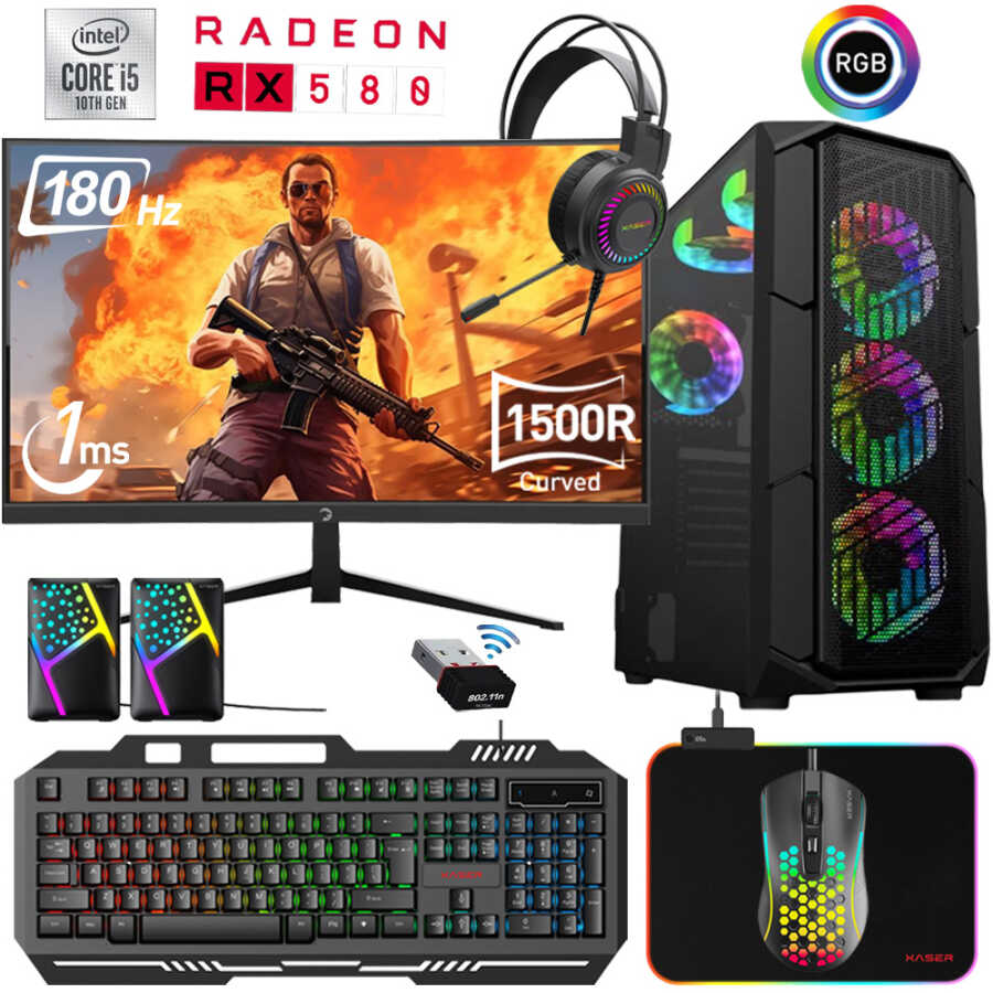 Xaser Xsr458 i5 10400F 16GB Ram 256GB M.2 NVMe SSD 8GB RX580 Ekran Kartı 24" Curved 180Hz Oyun Hazır Sistem