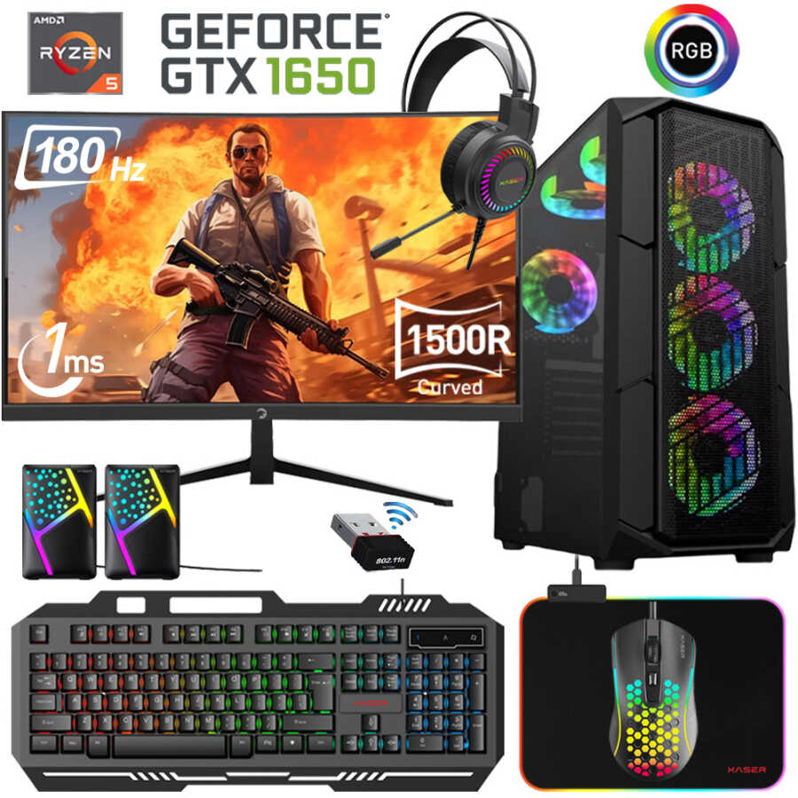 Xaser Xsr462 i5 10400F 16GB Ram 256GB M.2 NVMe SSD 4GB GTX1650 Ekran Kartı 24"Curved 180Hz Oyun Bilgisayarı