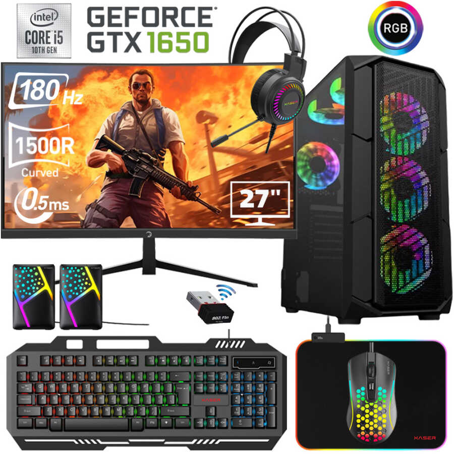 Xaser Xsr465 i5 10400F 16GB Ram 512GB M.2 NVMe SSD 4GB GTX1650 Ekran Kartı 27"Curved 180Hz Oyun Bilgisayarı