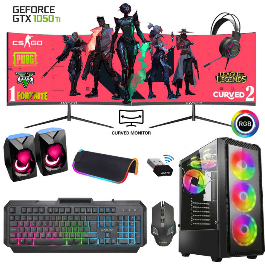 Xaser Xsr548 i5 6400 16GB Ram 512GB M.2 NVMe SSD 4GB GTX1050 Ti Ekran Kartı 24" Dual Curved Oyun Hazır Sistem