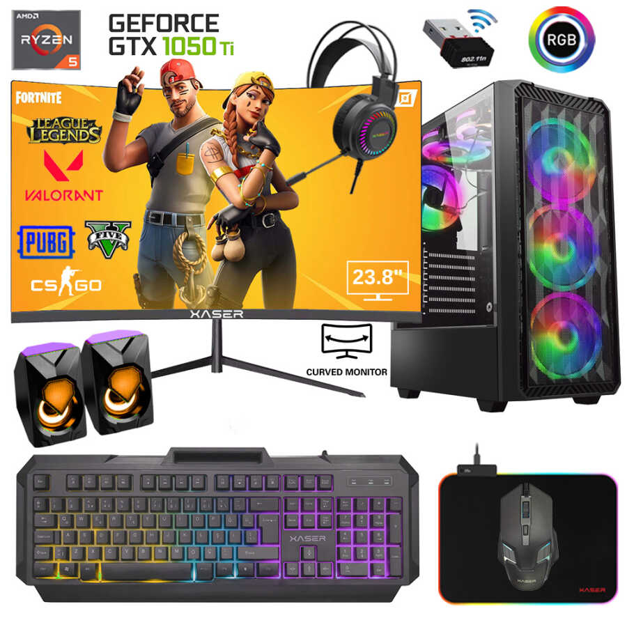 Xaser Xsr555 Ryzen 5 5600 16GB Ram 256GB M.2 NVMe SSD 4GB GTX1050 Ti Ekran Kartı 23.8" Curved Oyun Bilgisayarı