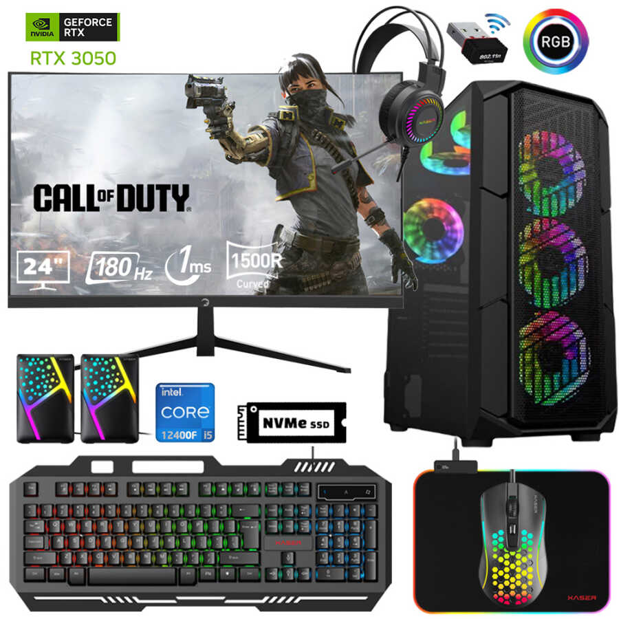Xaser Xsr572 i5 12400F 32GB Ram 1TB M.2 NVMe SSD 6GB RTX3050 24"Curved 180Hz Oyun Bilgisayarı
