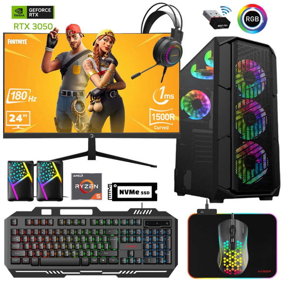 Xaser Xsr595 Ryzen 5 5600 32GB Ram 512GB M.2 NVMe SSD 6GB RTX3050 24"Curved 180Hz Oyun Bilgisayarı