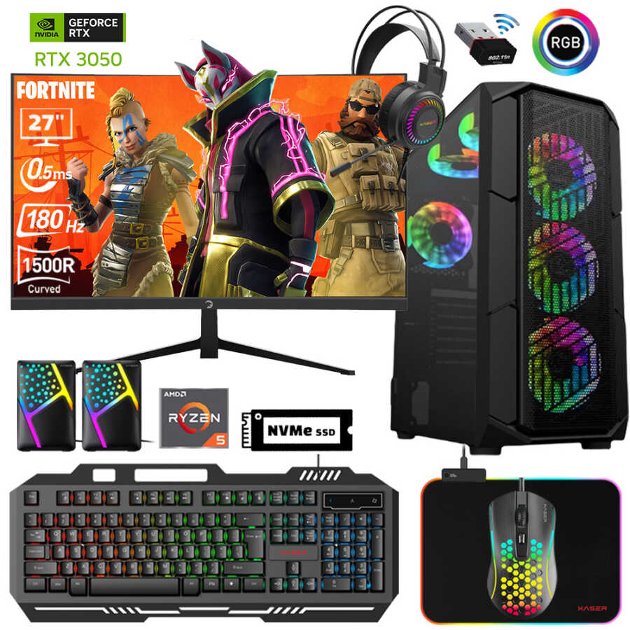 Xaser Xsr599 Ryzen 5 5600 32GB Ram 512GB M.2 NVMe SSD 6GB RTX3050 27"Curved 180Hz Oyun Bilgisayarı