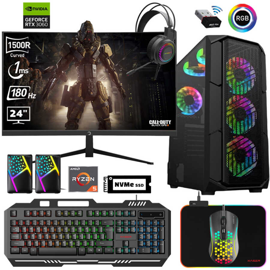 Xaser Xsr605 Ryzen 5 5600 16GB Ram 512GB M.2 NVMe SSD 12GB RTX3060 24"Curved 180Hz Oyun Bilgisayarı