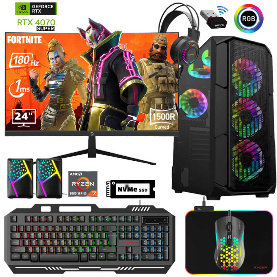 Xaser Xsr641 Ryzen 7 5700x 16GB Ram 512GB M.2 NVMe SSD 12GB RTX4070 SUPER 24"Curved 180Hz Oyun Bilgisayarı