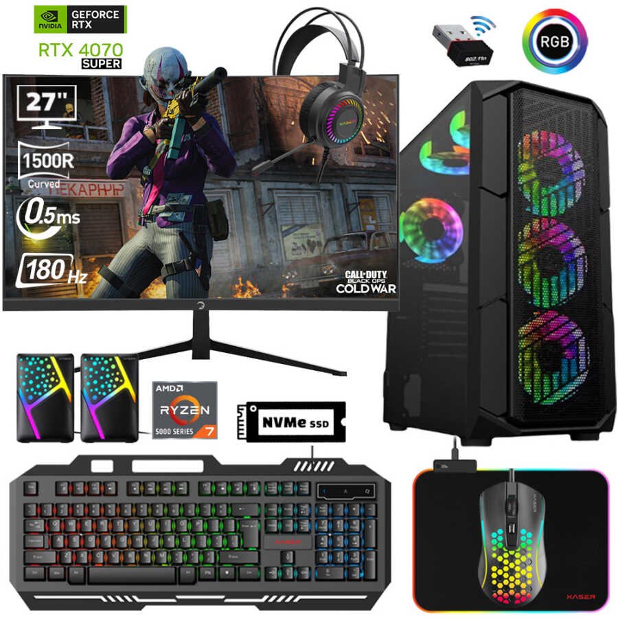 Xaser Xsr647 Ryzen 7 5700x 32GB Ram 512GB M.2 NVMe SSD 12GB RTX4070 SUPER 27"Curved 180Hz Oyun Bilgisayarı
