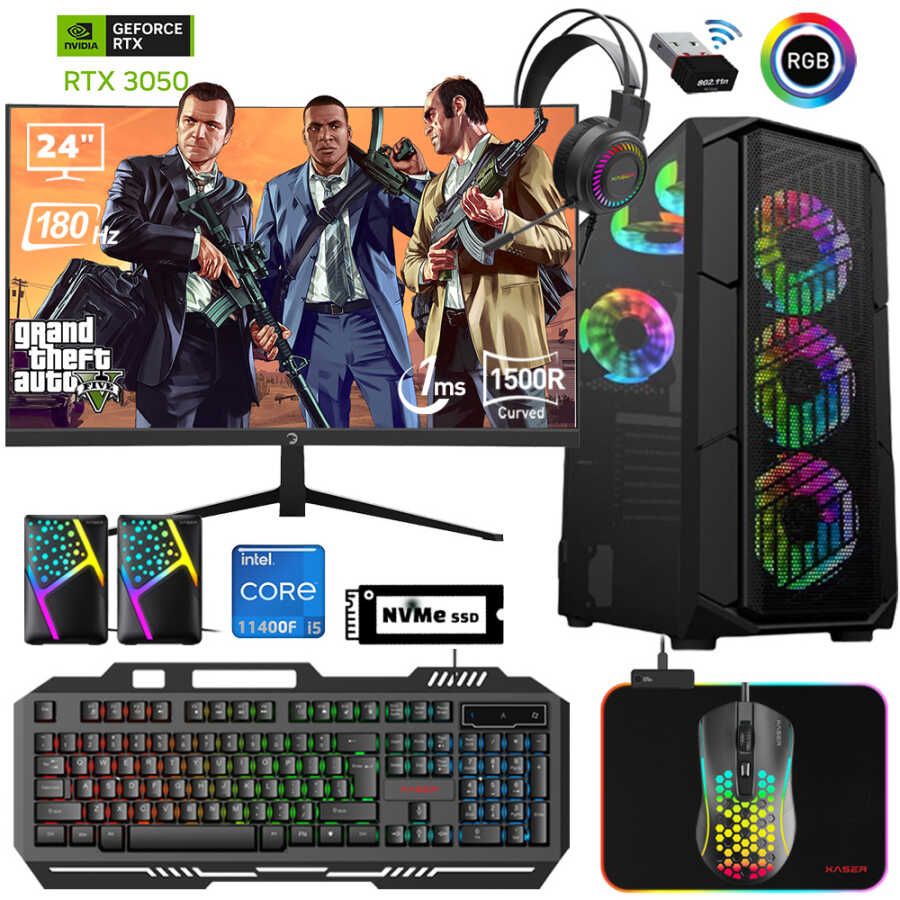 Xaser Xsr656 i5 11400F 32GB Ram 1TB M.2 NVMe SSD 6GB RTX3050 24"Curved 180Hz Oyun Bilgisayarı