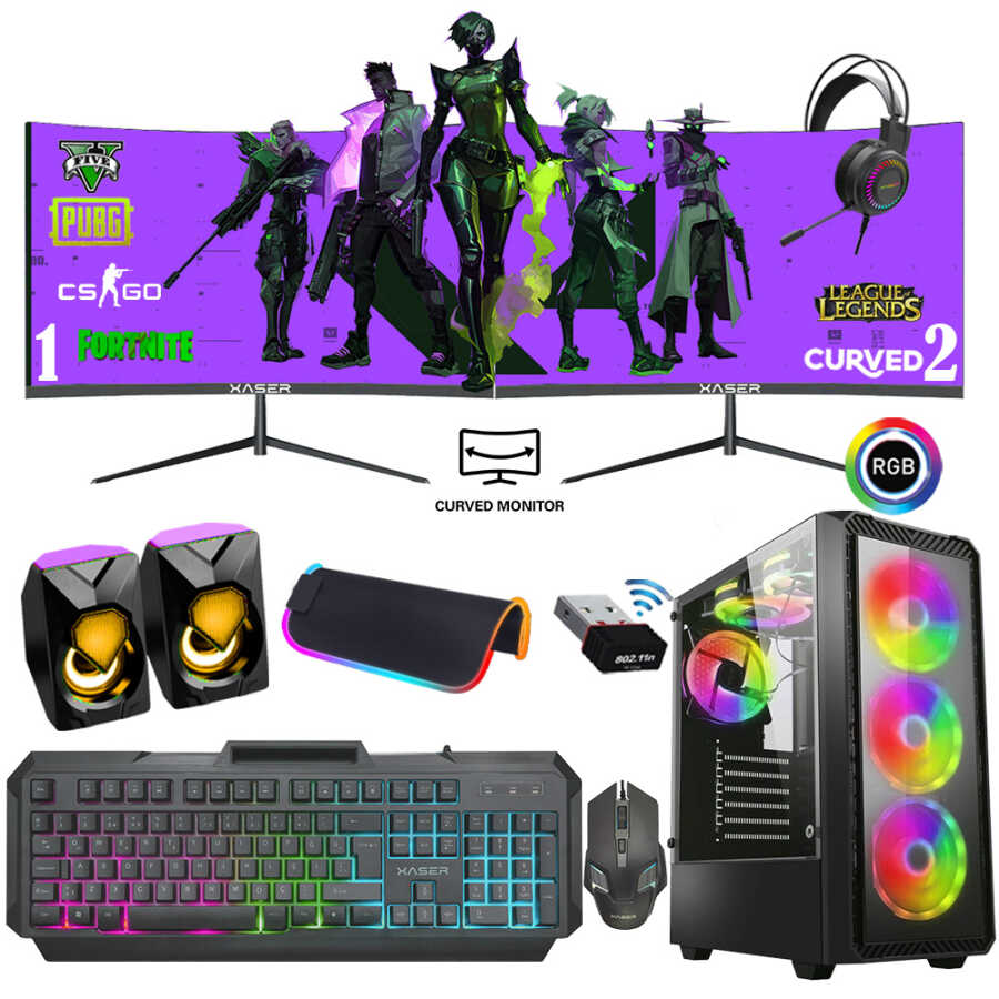 Xaser Xsr734 i5 3470 16GB Ram 256GB SSD 4GB RX550 Ekran Kartı 24" Dual Curved Oyun Bilgisayarı