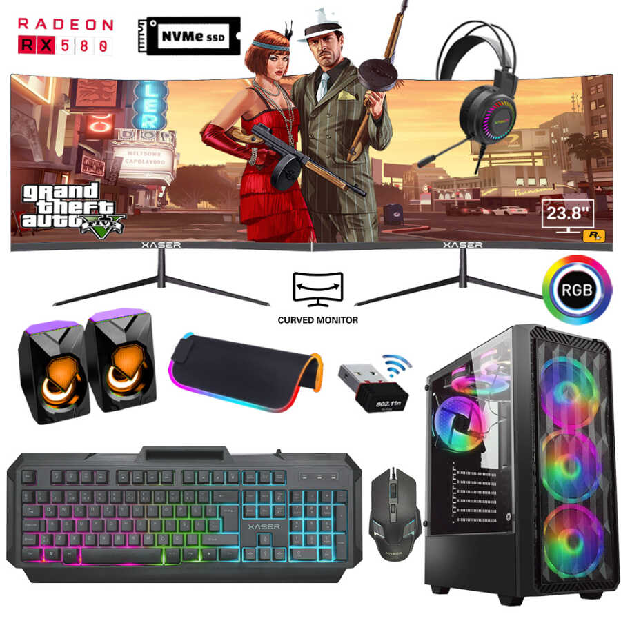 Xaser Xsr795 i7 4770 16GB Ram 512GB M.2 NVMe SSD 8GB RX580 Ekran Kartı 24" Dual Curved Oyun Bilgisayarı