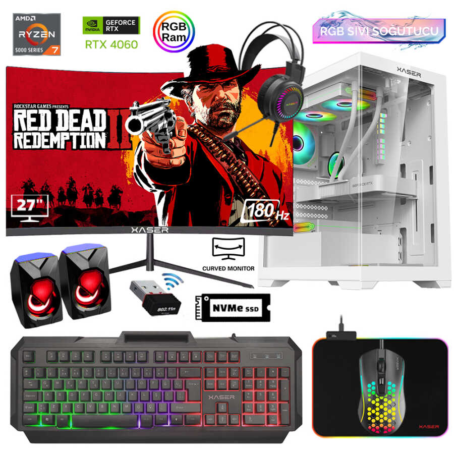Xaser Xsr828 Ryzen 7 5700x 16GB Ram 512GB M.2 NVMe SSD 8GB RTX4060 27"Curved 180Hz Sıvı Soğutma Oyuncu Bilgisayarı