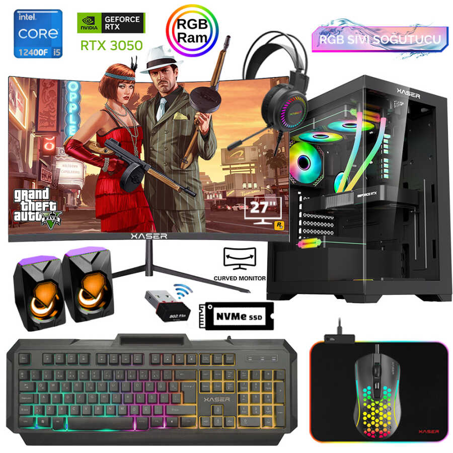 Xaser Xsr833 i5 12400F 16GB Ram 512GB M.2 NVMe SSD 6GB RTX3050 24" Curved 180Hz Sıvı Soğutma Oyun Hazır Sistem