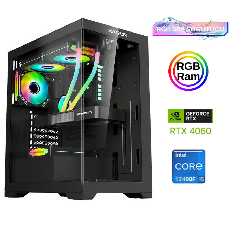 Xaser Xsr838 i5 12400F 16GB Ram 512GB M.2 NVMe SSD 8GB RTX4060 Sıvı Soğutma Oyun Hazır Sistem