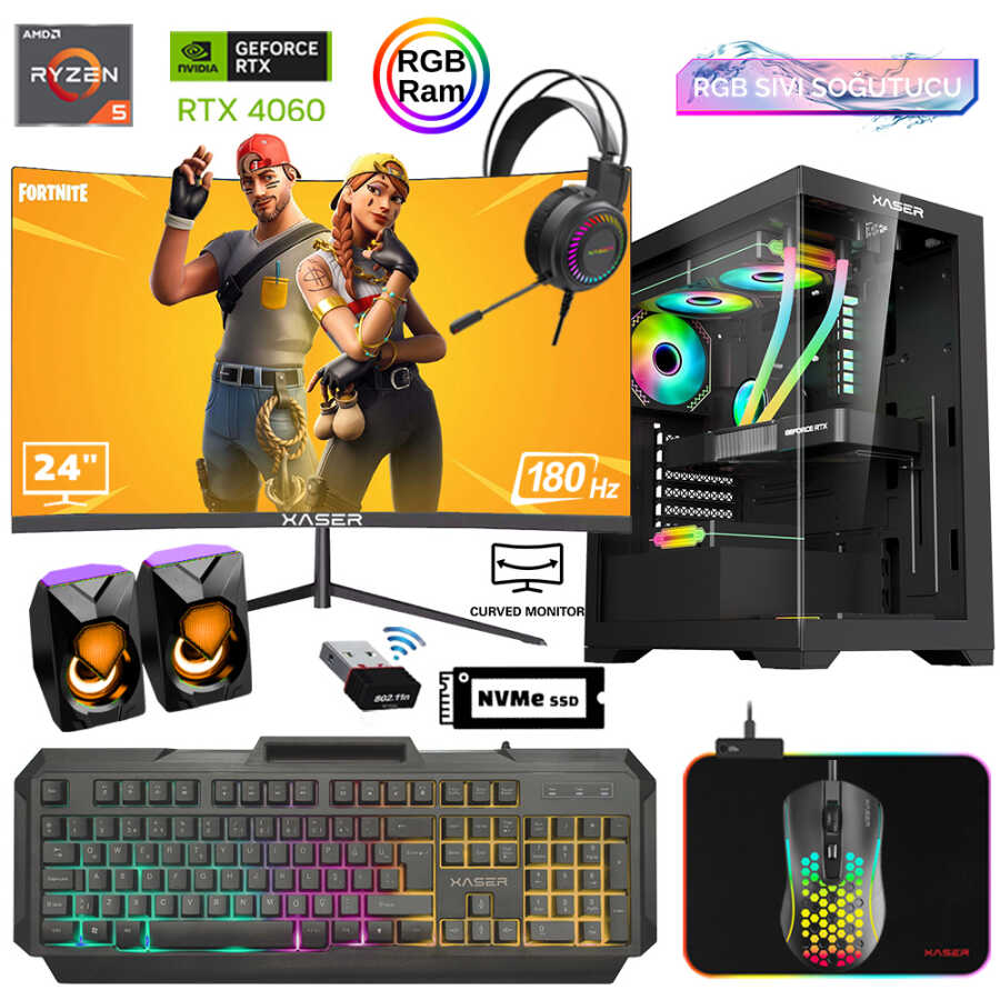 Xaser Xsr852 Ryzen 5 5600 16GB Ram 512GB M.2 NVMe SSD 8GB RTX4060 27" Curved 180Hz Sıvı Soğutma Oyun Hazır Sistem