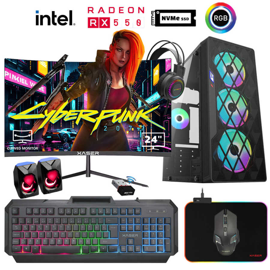 Xaser Xsr933 i5 3470 16GB Ram 1TB M.2 NVMe SSD 4GB RX550 Ekran Kartı 24 Curved Oyuncu Tavsiye Sistem